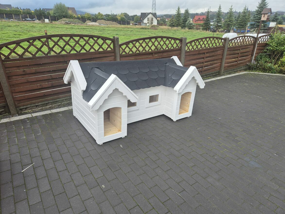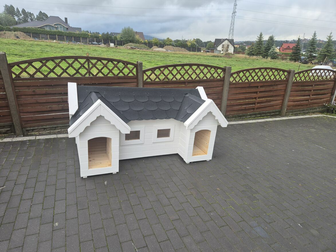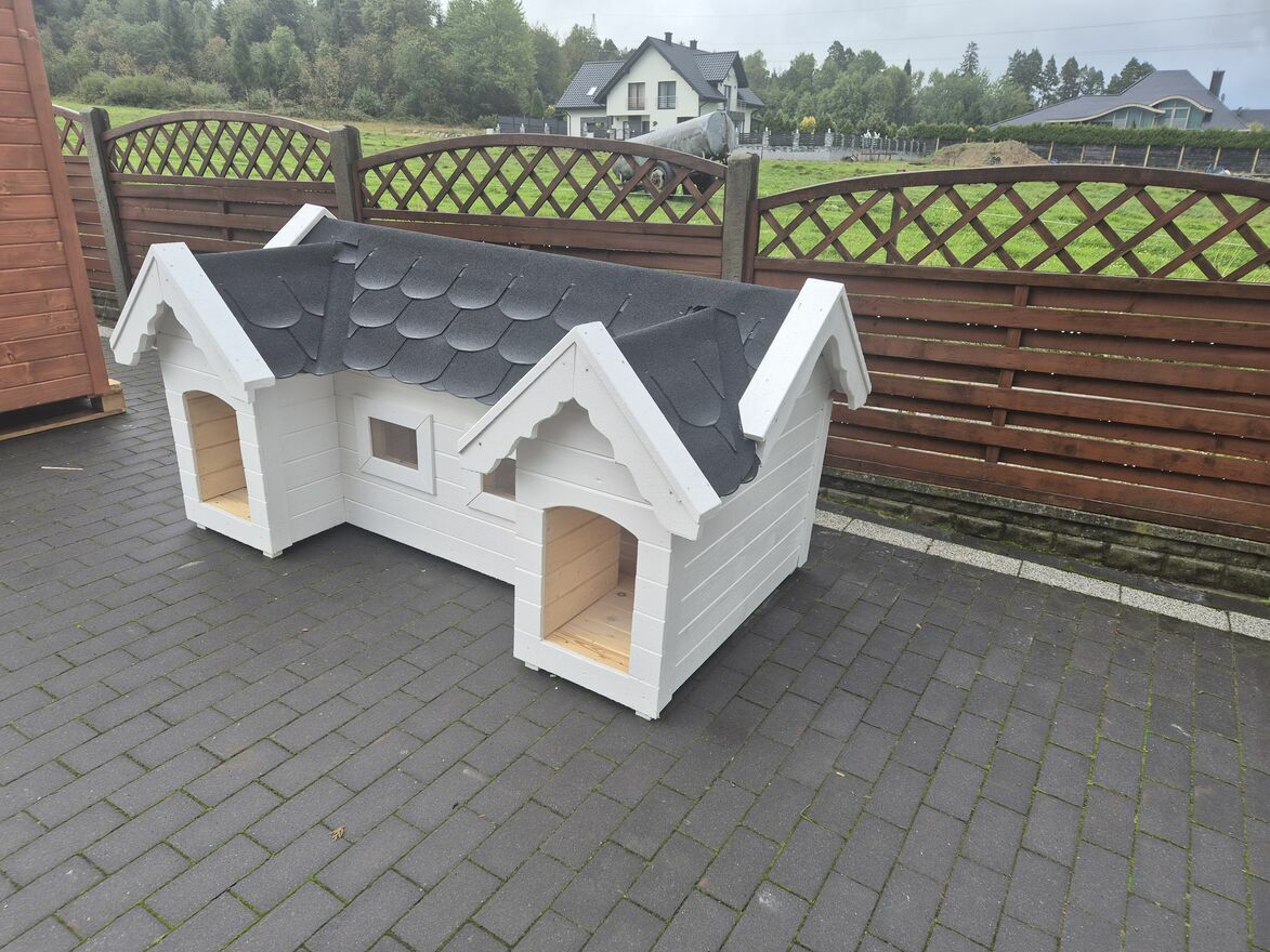Witam mam do sprzedania budę dla dwóch psów. Wymiary 1,80/1,00 wys 1,00 .Malowana kryta gontem bitumicznym. Kolor biały gont grafit. Z możliwością wysyłki od 500 zł w zależności od lokalizacji.