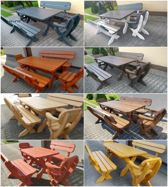 Witam. Komplety mebli ogrodowych drewnianych. Meble wykonane z drewna o grubosci 5cm Malowane drewnochronem a nastepnie ...